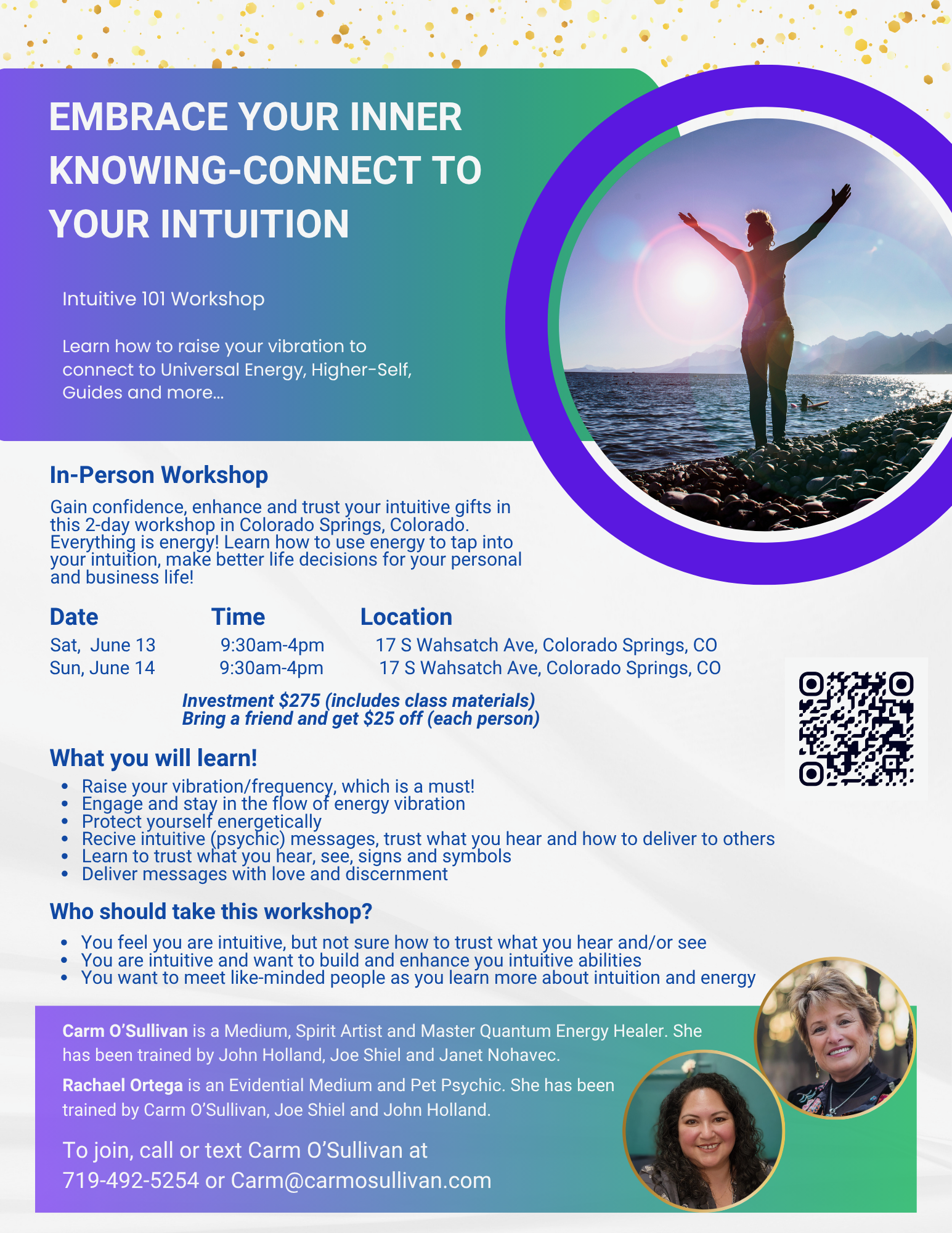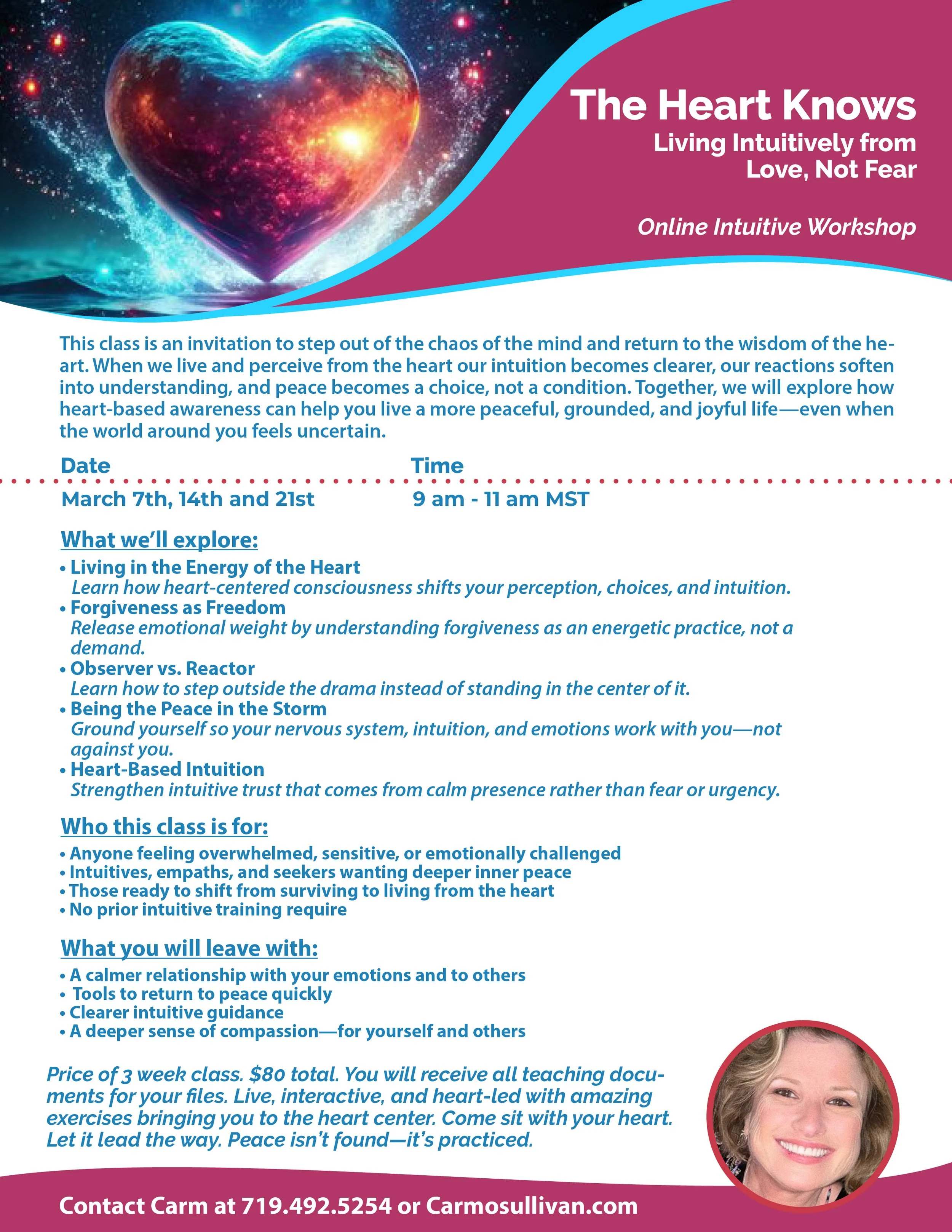 Join Carmel for an event, show or class!Our event calendar is full of different opportunities to join the spiritual community and see Carm in action!